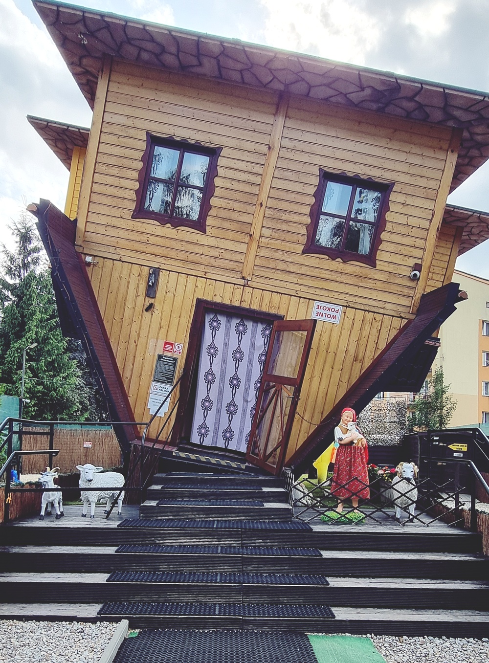 Matkalla takaisin alas osumme rakennukseen, joka näyttää vitsiltä. Ja onkin. Se on ylösalaisin talo, Dom Do Góry Nogami. Kävelemme sisään, ja koko maailma kääntyy ylösalaisin. Sänky on katossa, keittiö roikkuu ilmassa ja lattiassa ei ole mitään järkeä. Horjun hetken, nauran ääneen. ”Tämä on vähän niin kuin koko tämä päivä,” sanon. ”Kaikki näyttää tutulta, mutta mikään ei ole paikoillaan.” Kävellessäni väärinpäin olevia portaita alas päätän, että turistina oleminen saa joskus olla myös sekavaa ja kepeää.