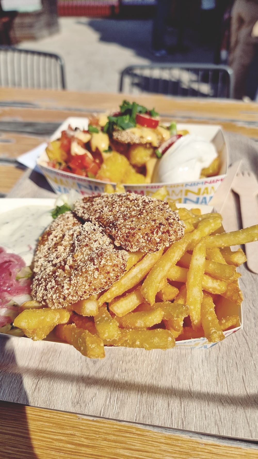 Ensimmäinen pysähdys oli tietenkin ruokapuolella. Lintsillä on monipuolinen valikoima ravintoloita ja herkkuja, joista jokainen löytää suosikkinsa. Kesäpäivän tunnelmaan sopi täydellisesti rento syöminen ilman kiirettä, kanakori, jäätelö ja pirtelö kuuluivat listalle.