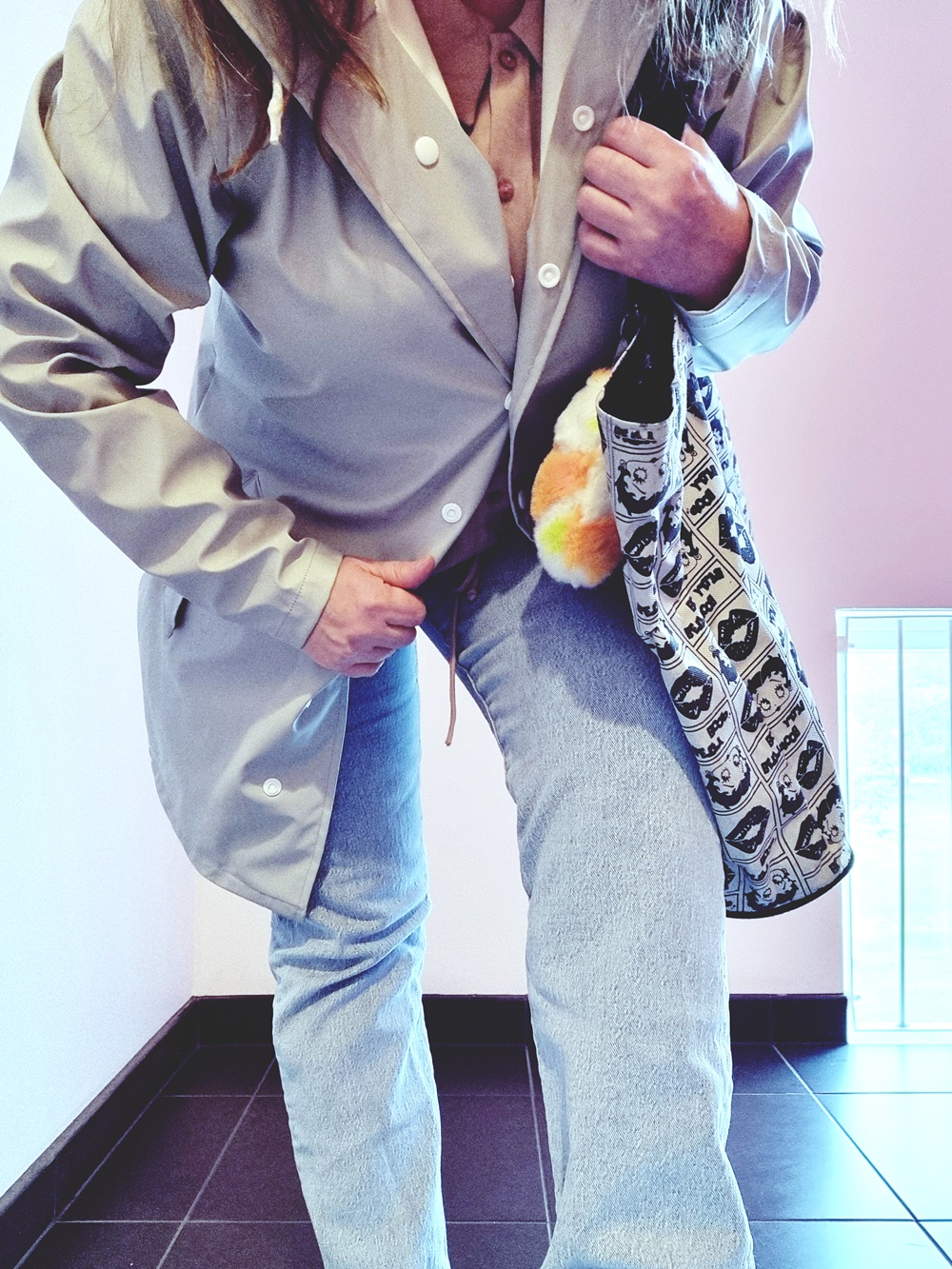 Päällä minulla oli ruskea paita, farkut, sadetakki ja lenkkarit, täydellinen yhdistelmä käytännöllisyyttä ja katu-uskottavuutta. Sadetakki piti minut kuivana (no, melkein) ja lenkkarit saivat minut juoksemaan lätäköitä pakoon kuin olympiavoittaja.