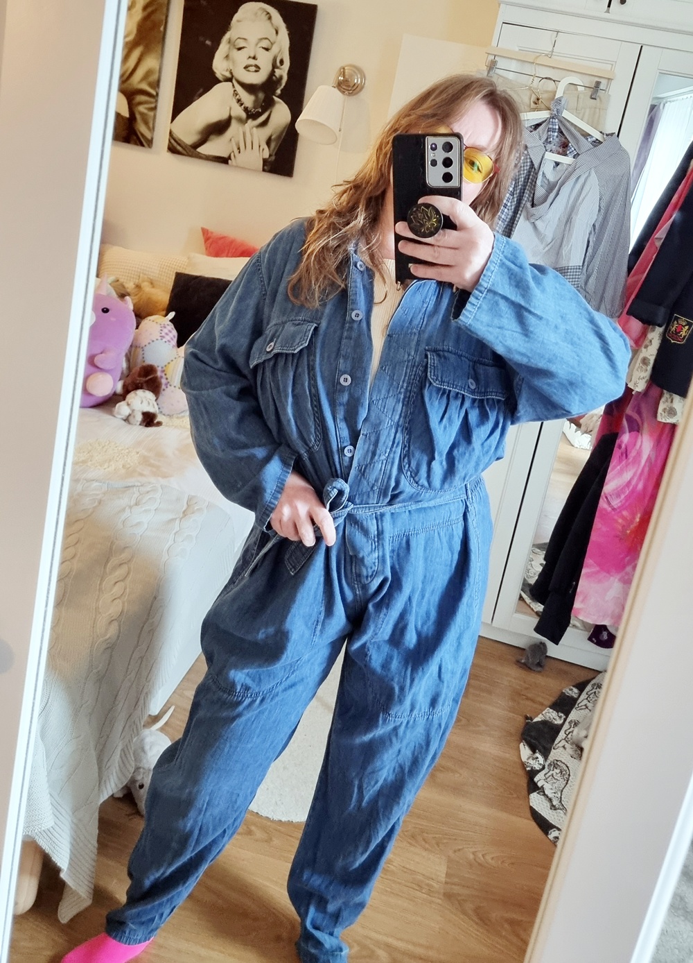 Löysin farkkuhaalarit, jotka huusivat nimeäni. Siis oikeasti, voiko olla mitään täydellisempää kuin haalari, johon voi piiloutua sadepäivänä ja näyttää samalla siltä, että olisi matkalla taidegallerian avajaisiin?