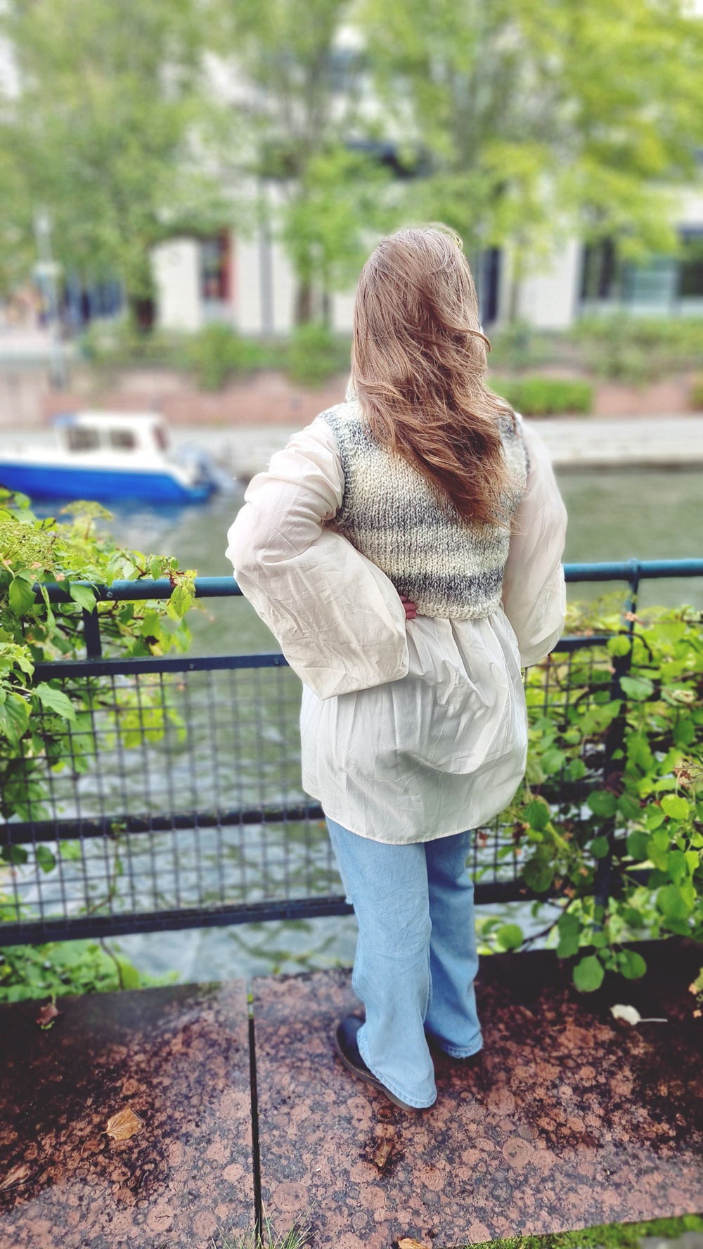Kaupunginrannan syksy ja itse tehty liivi, tämä päivä oli juuri sellainen, jolloin kamera, käsityö ja kaupungin syksyiset maisemat kohtasivat täydellisesti. UFFista hankitut farkut ja itse tekemäni neuleliivi pääsivät ulkoilemaan, ja niiden ympärille syntyi kokonainen tarina, joka kuljetti minua pitkin siltoja veden äärellä kohti kaupungin keskustaa.