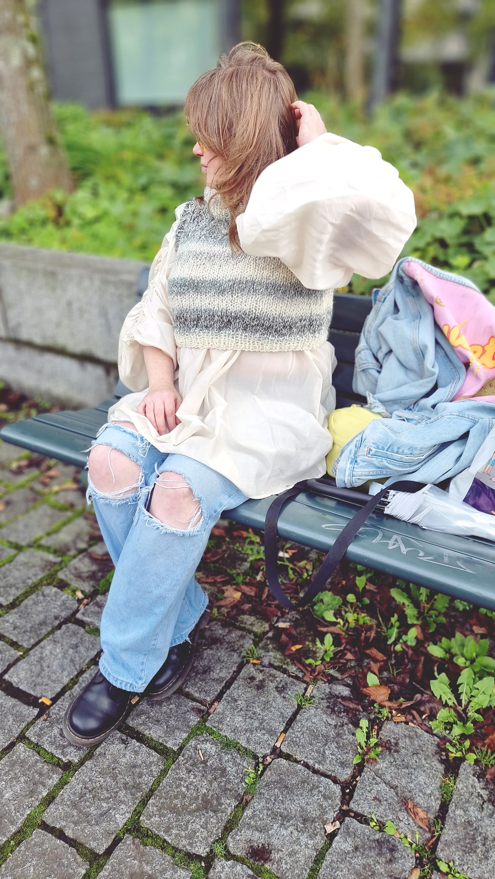 On niitä päiviä, jolloin koko kaupunki tuntuu hengittävän samaan tahtiin ja tänään oli juuri sellainen. Heräsin sateen jälkeiseen raikkaaseen aamuun, siihen hetkeen kun ilma on kostea mutta ei enää harmaa, ja päätin lähteä ulos kävelylle. Päälle päätyi uusi lempiyhdistelmäni: itse tekemäni neuleliivi ja UFFista löydetyt, täydellisesti risaiset farkut.