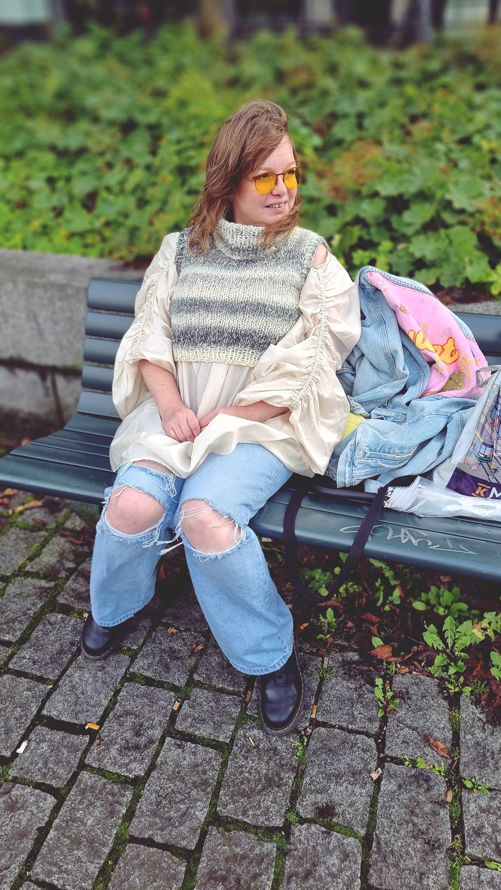 Tällaiset hetket muistuttavat, miksi rakastan sekä käsitöitä että second hand -löytöjä. Ne kantavat mukanaan tarinoita, ja kun neuleen teen itse ja farkut löytävät minut, niistä tulee osa minun tarinaani.