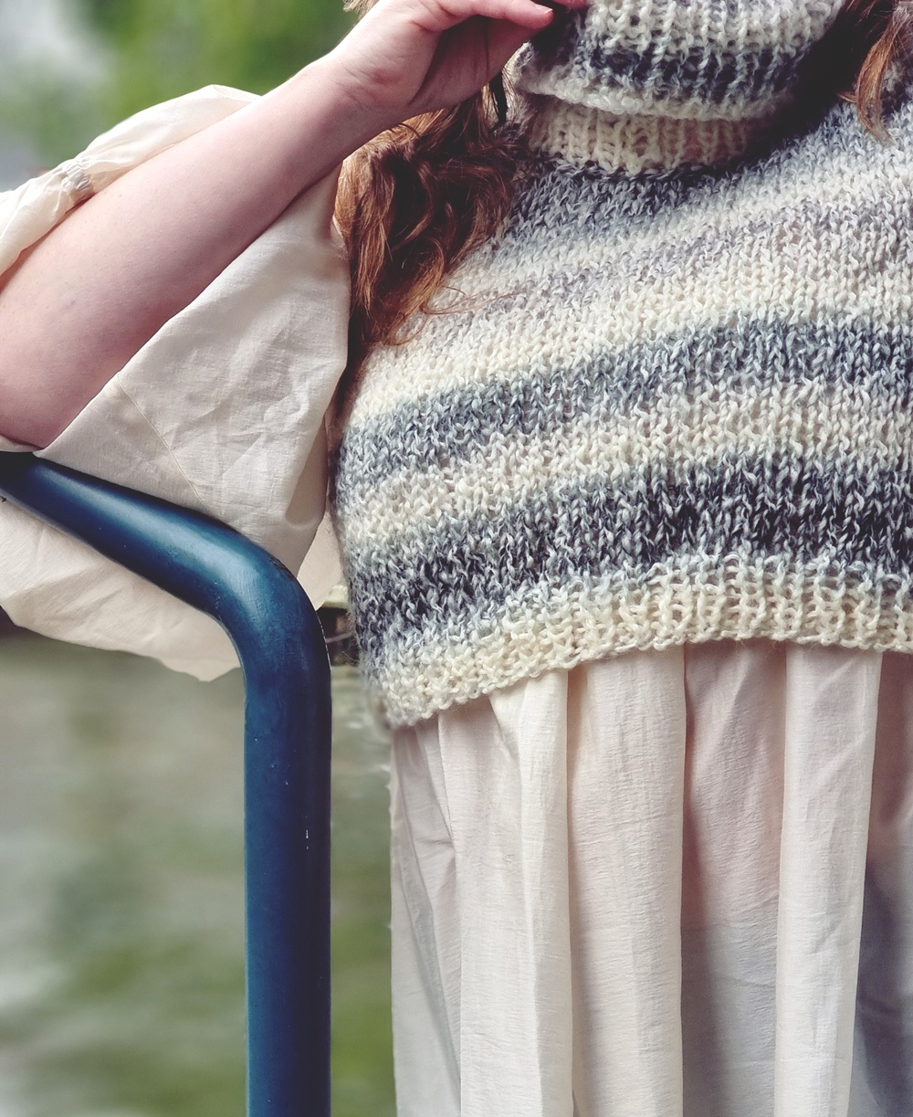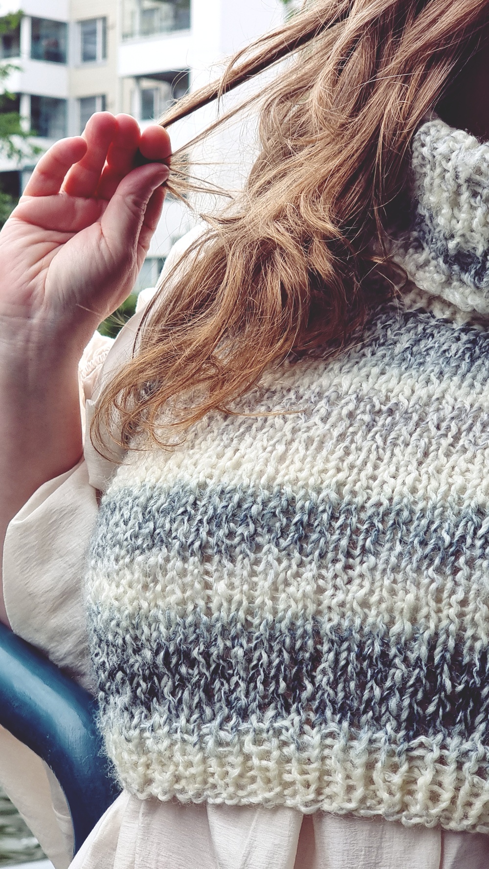 Rakastan sitä, että se ei ole täydellinen. Neuleen raidat syntyivät langasta itsestään, kuin luonnon inspiroimana, vähän kuin syksyn lehdet, jotka eivät koskaan tipu samanlaisina.