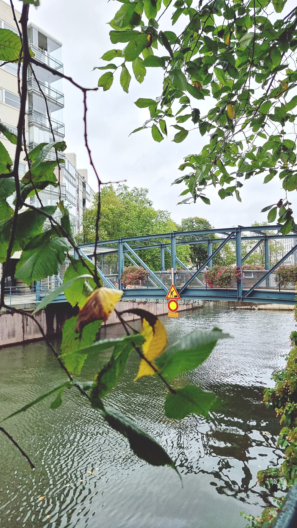 Silta oli koristeltu kukilla ja lehdet olivat jo alkaneet tippua. Tuuli heilutti oksia, ja kun katsoin peilikuviani vedestä, tajusin että tässä hetkessä oli jotain hyvin rauhoittavaa. Ei ollut kiire minnekään, ei edes syytä katsoa puhelinta.