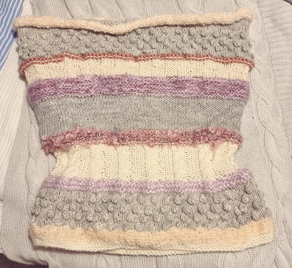 Kun ilta hämärtyy ja takassa rätisee tuli, on täydellinen hetki tarttua puikkoihin. Lämpimät sävyt beige, ruusunpunainen, harmaa ja vanharoosa luovat tunnelman, jossa mennyt ja nykyhetki kohtaavat. Jokainen kerros neuleessa kantaa mukanaan pienen tarinan: mistä lanka on jäänyt, mitä siitä aikanaan tehtiin, kenelle se ehkä kuului. Jämälankojen värit sekoittuvat kuin unessa, muodostaen harmonisen kokonaisuuden, jota ei voisi suunnitella etukäteen. Se on romantiikkaa puhtaimmillaan sattuman ja käsityön yhteinen tanssi.