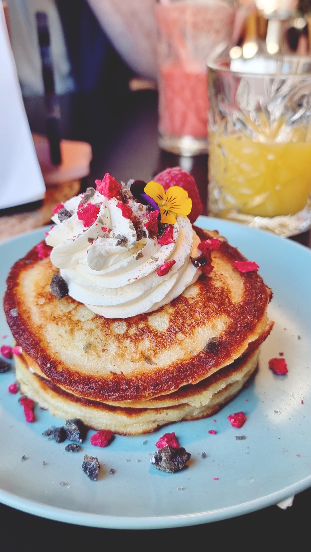 Kun pöytään tuotiin aamupalapannukakut, ne näyttivät melkein liian kauniilta syötäväksi: kullankeltaisia kerroksia, joiden päällä lepäsi pilvenkeveä kermavaahto, kuivattuja marjoja ja pieni syötävä kukka. Siinä hetkessä maailma oli täydellinen, pieni hetki, joka ei kaipaa sanoja, vain hiljaista hymyä ja kahvikupin kilahduksen.