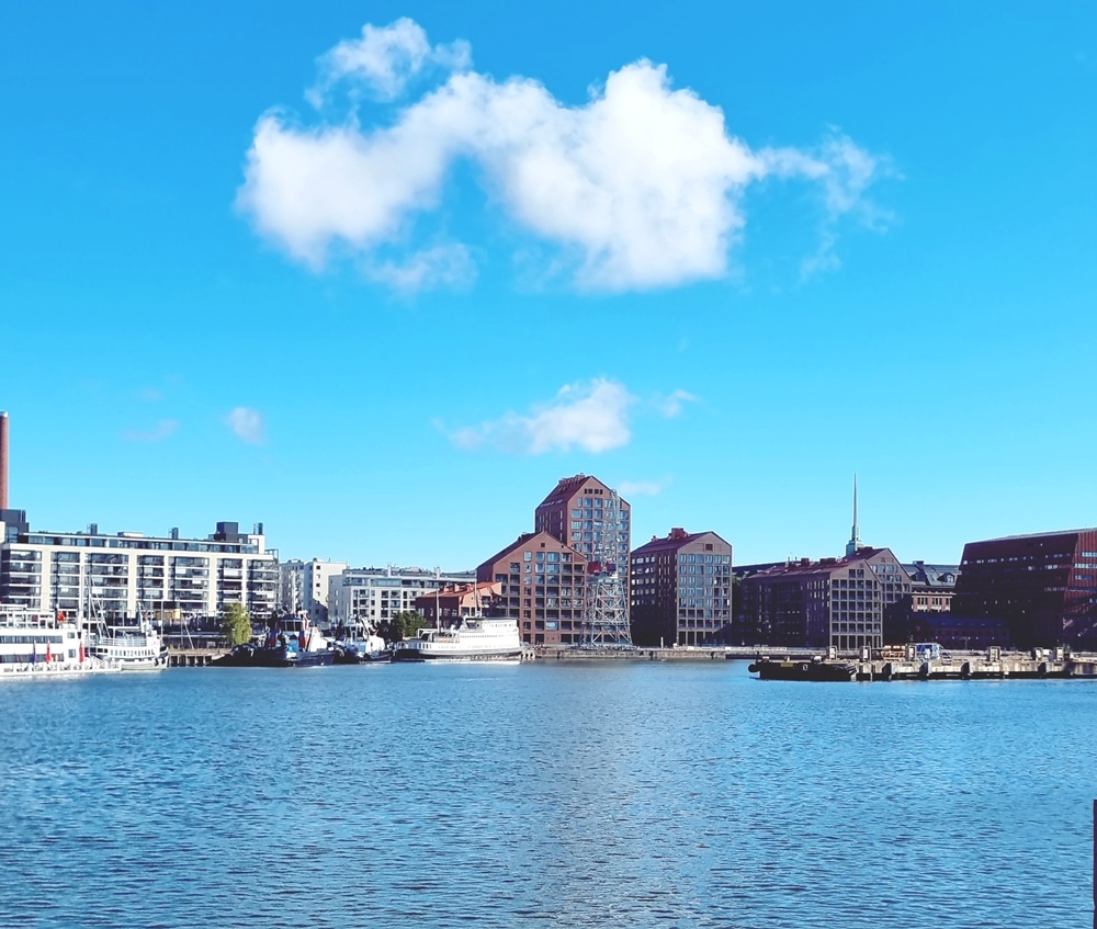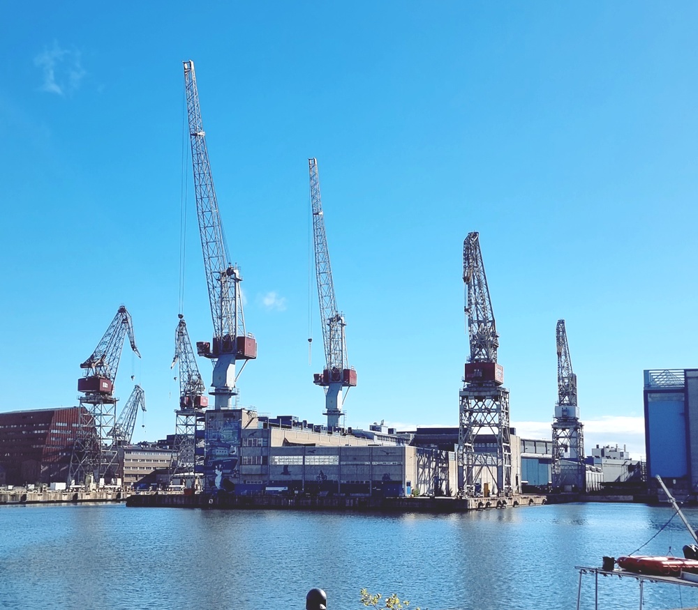 Kauempana näkyivät nosturit, valtavat, metalliset jättiläiset, jotka kertoivat omaa tarinaansa kaupungin muuttumisesta. Ne ovat olleet siinä niin kauan, että niistä on tullut osa maisemaa, osa sen rytmiä.