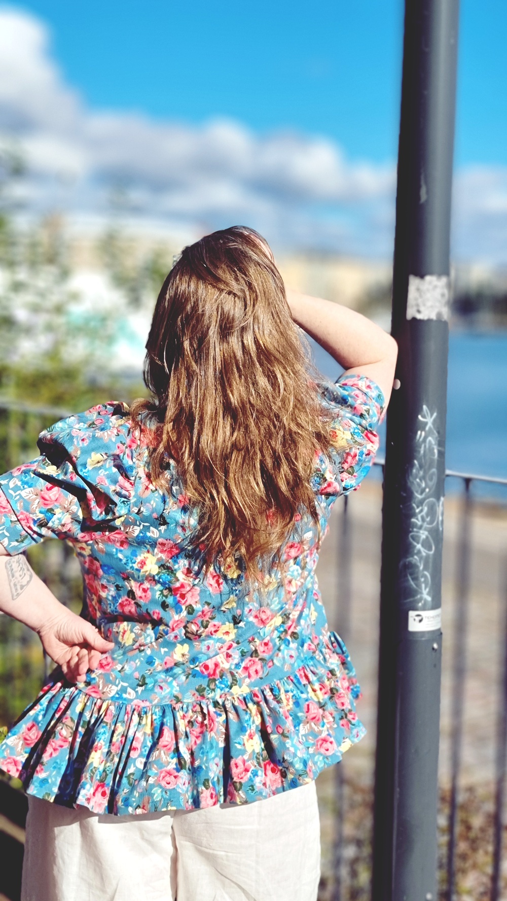 Tämä paita, sen kukat ja röyhelöt, muistuttavat siitä, että romantiikka ei ole vain juhlahetkiä varten. Se voi olla läsnä myös tavallisessa sunnuntaiaamussa, kävelyssä kotiin pannukakkujen jälkeen, sataman hiljaisessa tuulessa.