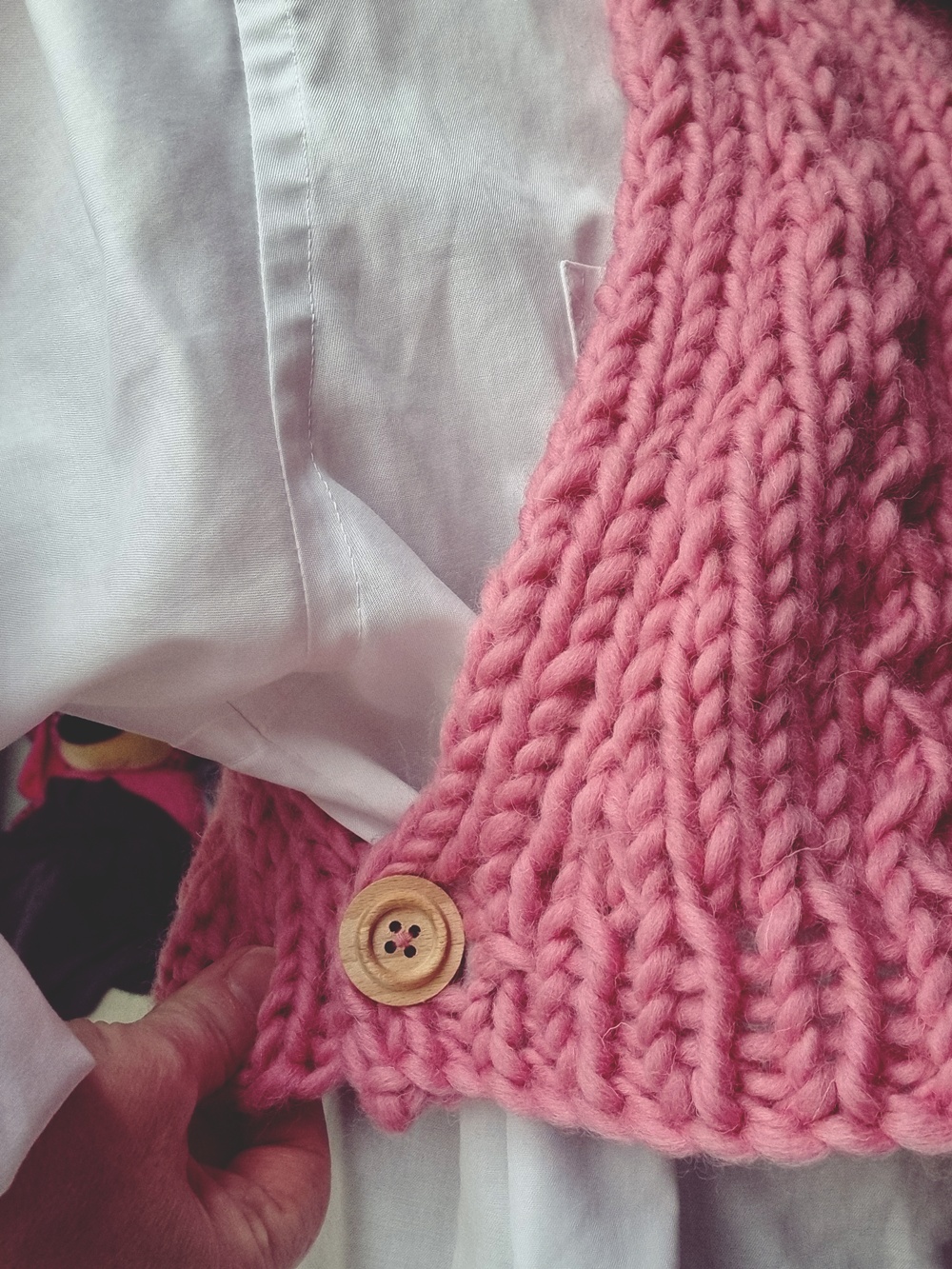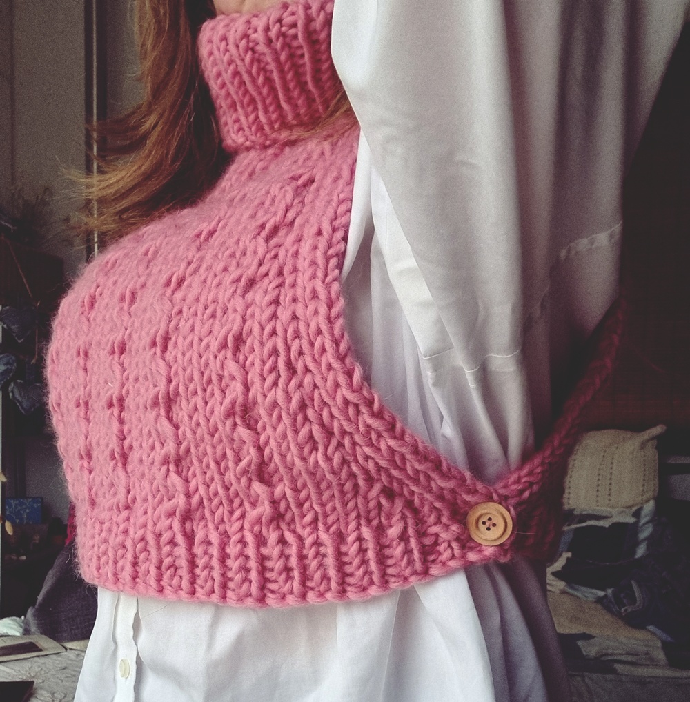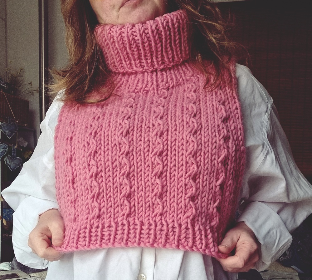 Pinkki voi myös symboloida rohkeutta olla herkkä. Se on väri, joka muistuttaa meitä siitä, että pehmeys ei ole heikkoutta, vaan voimaa. Talvimarja-kaulurin pehmeä sävy ja kohoneuleen elävä pinta toimivat kuin suojakuorena, jonka sisällä voi hengittää rauhassa ja olla oma itsensä.