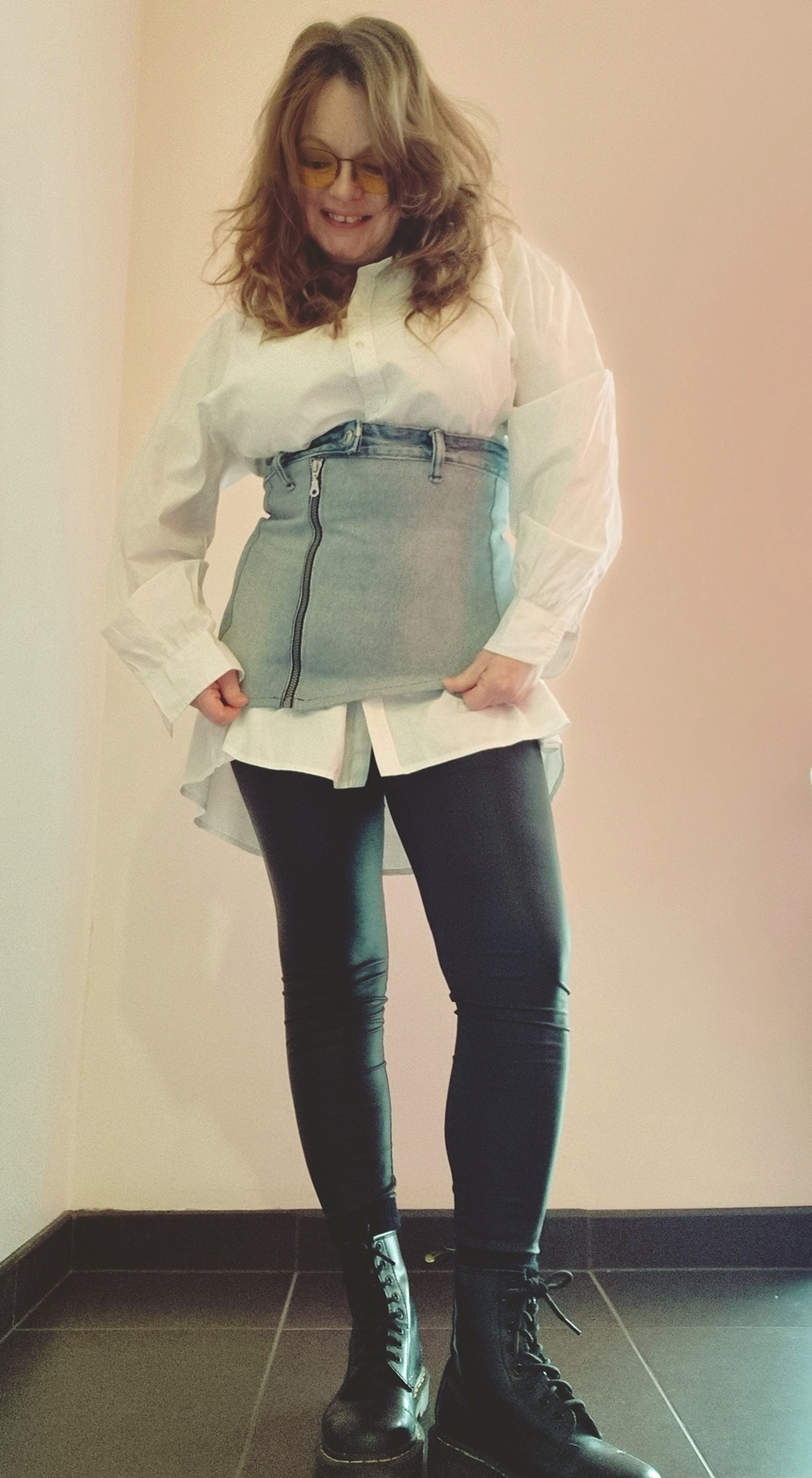 Ompelin sen itse, sillä vanha denim ansaitsee jatkaa matkaa jossain muodossa. Tämä vyö ei ole mikään hillitty asuste, vaan tyylin vallankumous. Jos joku kysyy, miksi, vastaan: “Koska voin.” Ja juuri siinä on secondhand-tyylin taika.