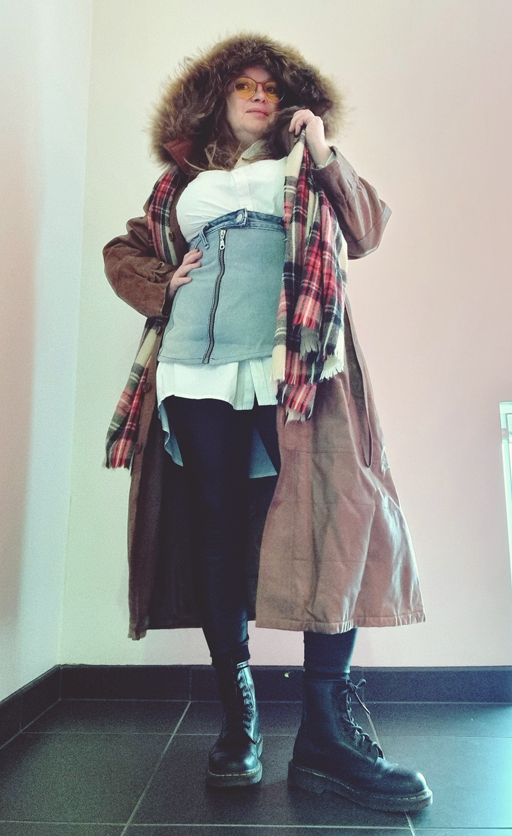 Asun täydentää pitkä ruskea nahkatrenssi, jonka löysin Siisti-kirppikseltä. Kevyesti topattu, pehmeä ja sopivan dramaattinen, sellainen takki, joka tekee vaikutuksen, vaikka alla olisi verkkarit. Kaulassa taas on ruudullinen kaulaliina, jonka poimin Kierrätyskeskuksen ilmaisosastolta. Se on pehmeä, lämmin ja muistuttaa, että parhaat löydöt eivät aina maksa mitään. Kirppistyylissä on parasta juuri se: se kertoo tarinoita. Yksi vaate on ollut osa jonkun toisen elämää ennen kuin siitä tulee osa minun.