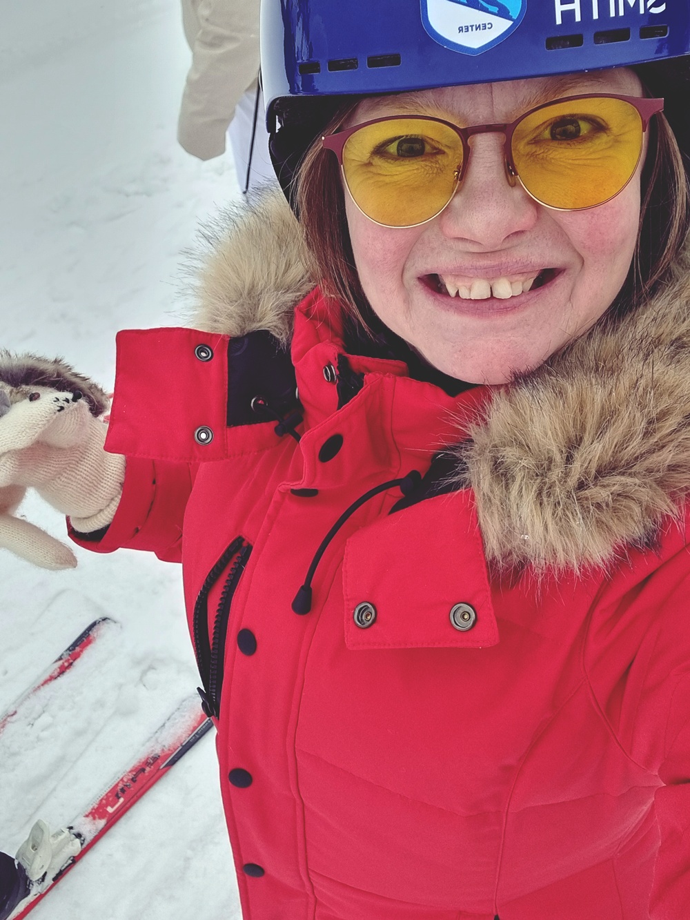 Laskettelu oli unta vain. Ei rinteitä, ei hissejä, ei sitä tuttua suksen suhinan ääntä. Mutta ehkä juuri siksi tämä asu syntyi. Kun ulkoinen talvi puuttuu, sisäinen talvi rakennetaan villasta, neuleista ja huumorista. Metsä toimi näyttämönä: askel kerrallaan, naurun kanssa, ilman kiirettä. Tämä ei ollut pettymys, vaan muistutus siitä, että joulu ei ole säästä kiinni. Se on hetkissä, käsissä ja siinä, että tekee itse jotain kaunista.