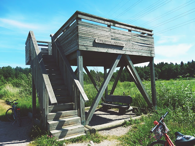 Koska kaksin oltiin, niin päätettiin lähteä myös kunnon pyöräretkelle Itä-Helsinkiin päin. Tarkkaa kohdetta ei ollut mutta päätettiin aloittaa matka Viikin Hakalanniemen ulkoilualueelta ja jatkaa siitä Herttoniemen läpi Laajasaloon. Hakalanniemi jo pelkästään on upeaa aluetta ja kannattaa tehdä patikkaretki sinne. Olemme joskus siellä kierrelleetkin ja tännekkin olen jotain siitä kirjoittanut. Nyt tosin ei jääty sitten sinne vaan jatkettiin matkaa eteen päin. Tällä kertaa näin kyllä Hakalanniemen ihan toisenlaisena kuin ennen, tehtiin ekalla kerralla niin pieni lenkki, että sen upeutta ei juuri tajunnut. Nyt näin ja varmasti tullaan uudelleen vaeltelemaan sinne.