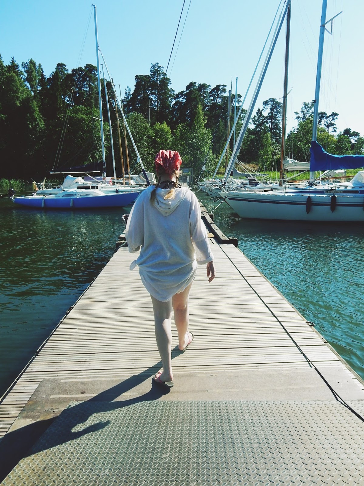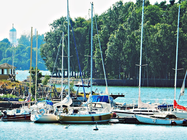 Koska lähdettiin reissulle niin nopeasti ja matkalla tajuttiin, ettei oltu syöty yhtään mitään ja kello tikitti jo kolmea, niin oli ihan pakko suunnistaa ensimmäiselle mahdolliselle ruokailupaikalle mikä alueelta löytyi. Ei auttanut kuin polkasta Tullisaarea lähellä olevalle pursiseuralle ja istahtaa Ravintola Pyysaaren merelliseen maisemaan. Suosittelen paikkaa ihan jokaiselle. Ruoka maistui ja oli ihanan rauhallista. Ruokailijat puhuivat ruotsia ja suomea ja olo oli kuin olisi jossakin matkoilla olisi ollut. Täytyy myöntää, että en ole kyllä kaivannut ulkomaille tänä kesänä vaikka ikävä Krakovaan onkin kova. Helsinki on yllätyksiä täynnä ja upea kaupunki.