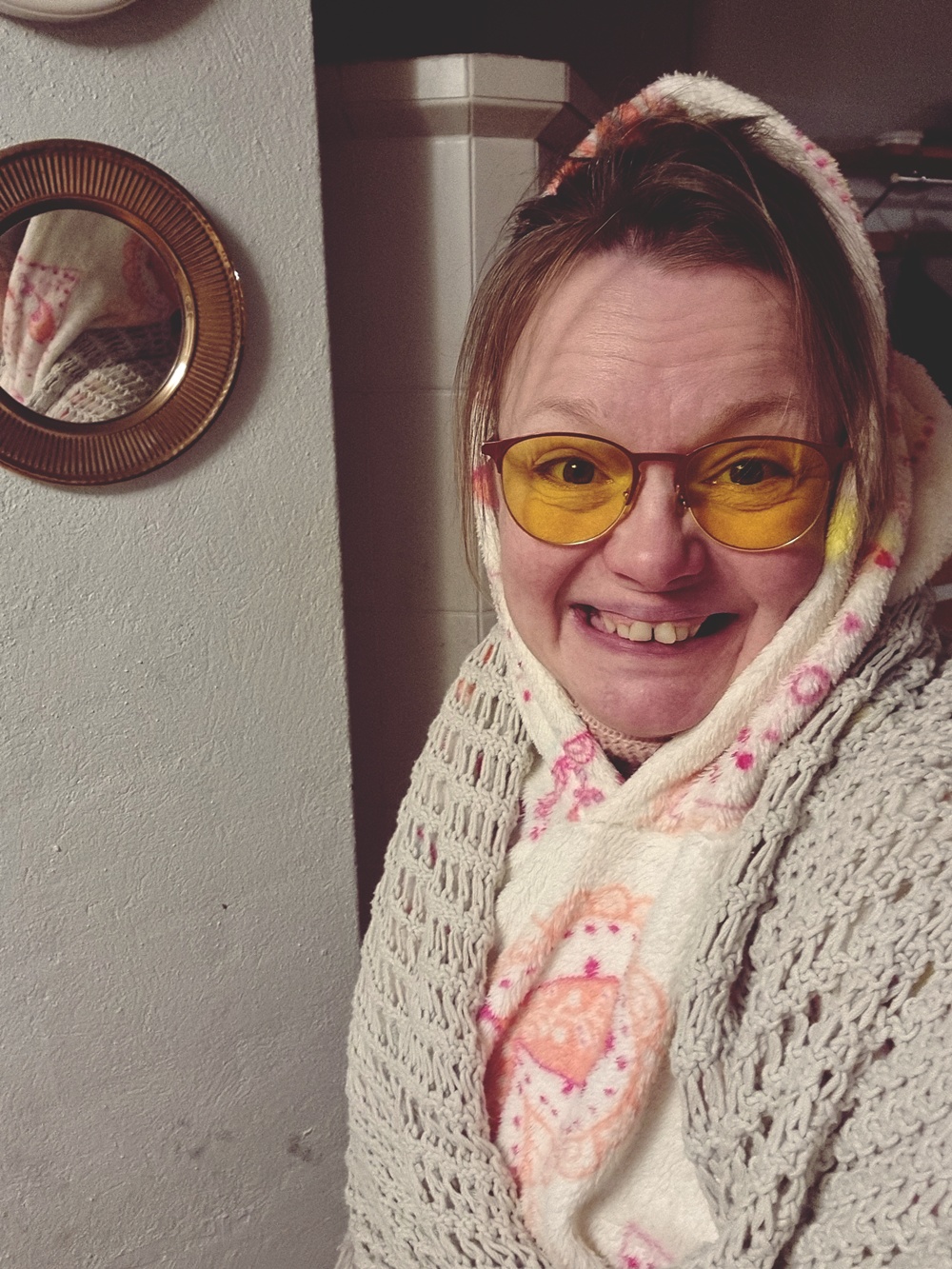 Lämmitimme saunan ja söimme. Yksinkertaista ruokaa, ei mitään erityistä, mutta juuri oikeaa siihen hetkeen. Sauna teki hyvää ja oli ihanaa pitkästä aikaa saunoa puulämmitteisessä saunassa. Saunan jälkeen istuimme hiljaa, iho vielä lämmin, hiukset kosteat. Talvinen mökki tekee puhumisesta tarpeetonta.