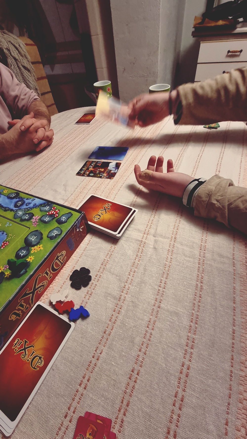 Illalla pelasimme lautapelejä, samoja, jotka veimme kotoa mökille. Niissä on jotain lohdullista: tutut säännöt, sama rytmi, mutta eri ympäristö. Aika kului huomaamatta. Lautapelit saivat jäädä mökille. Meillä kun noita lautapelejä on valtavasti ja näin tulee pelattua kaikkia.