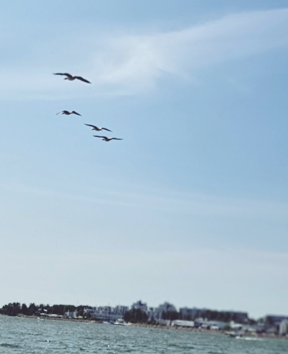 Jalkoihini sujautin Fidasta löydetyt vaaleanpunaiset sandaalit, joissa on jotakin suloisen lapsellista ja syvästi lohdullista. Ne eivät ole täydelliset, mutta ne ovat aivan ihanat ja mikä tärkeintä, ne ovat kuin tehdyt kulkemaan rantapolkuja pitkin kakkupaperit taskussa ja hiukset tuulessa. Ja entä ne pussit, joita kannan hellästi kuin jotain salaperäistä aarretta? Niissä lepäävät kaupungin suloisimmat leivokset, täynnä vaniljaa, marjoja ja haaveita. Oli tarkoitus levittää huopa kivetykselle, antaa merenlaineiden laulaa ja syödä jokaisen murun hitaasti, kuin aika olisi pysähtynyt vain meille.
