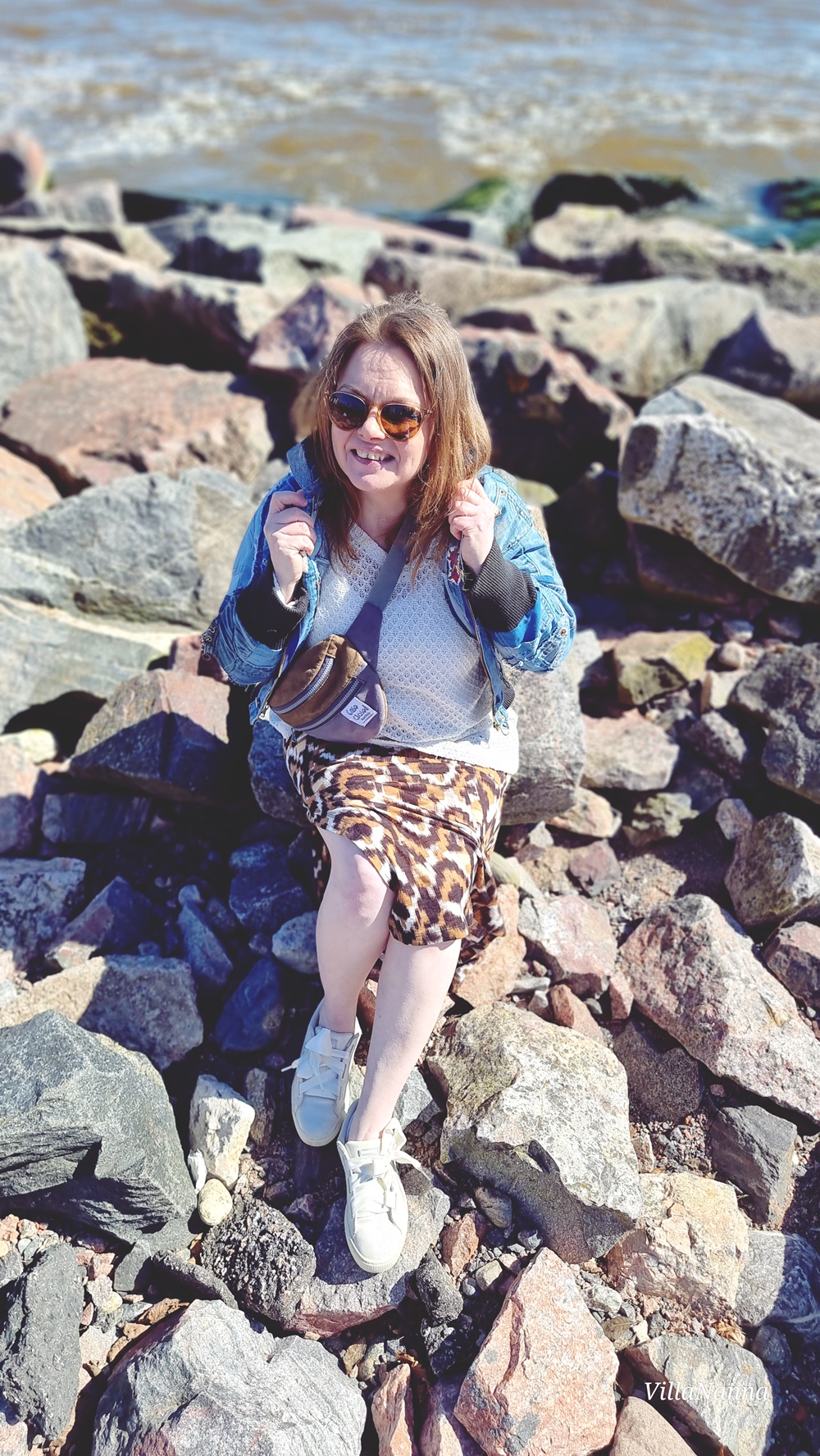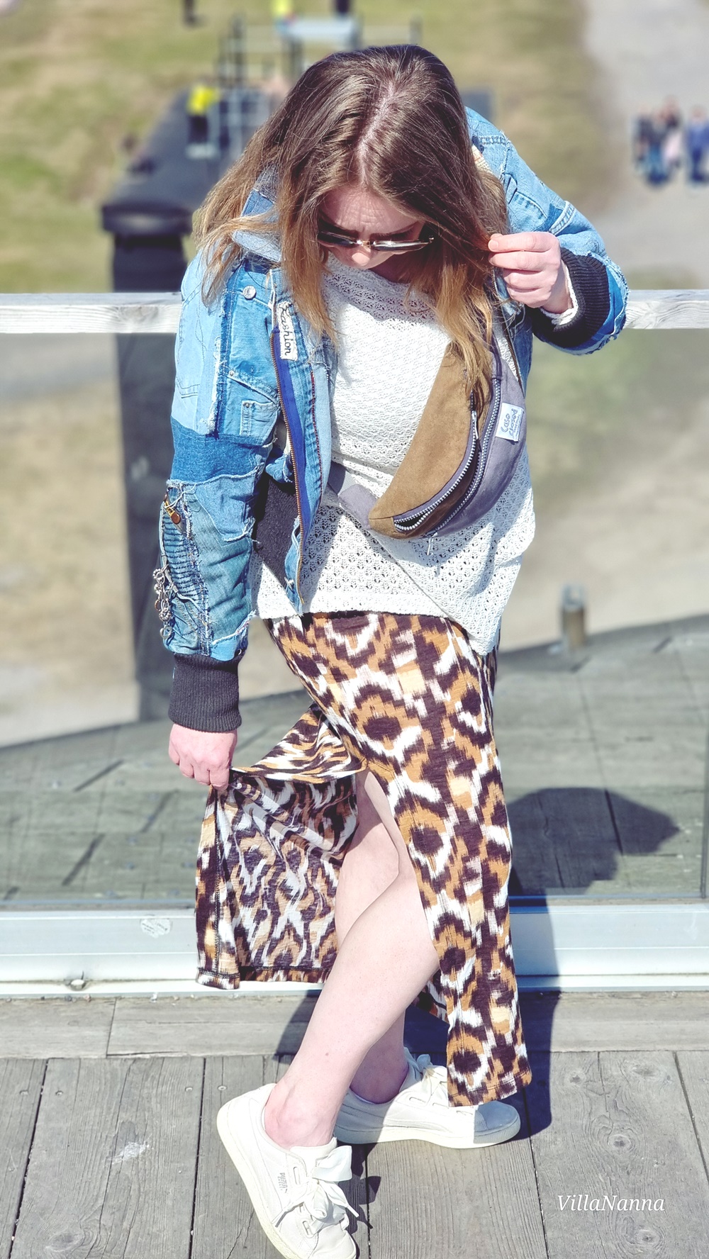 Oikeasti näin näyttävä takki vaatii aika simppelin asun, mutta koska minä en ole simppeli, niin puen takin kanssa vähän mitä sattuu ja vappuna tietenkin puin takin kanssa pitsipaidan sekä kuviollisen hameen. Tämä takki on siitä kiinnostava, että tämän voi näyttävyydestä huolimatta yhdistää minkä tahansa tyylin kanssa. Esimerkiksi vaikka leveälahkisten housujen ja t-paidan kanssa. Päähän tietenkin lippalakki. Farkut toimii myös aina, vähän viileämmällä ilmalla voi farkkujen pariksi laittaa puuvillaneuleen.