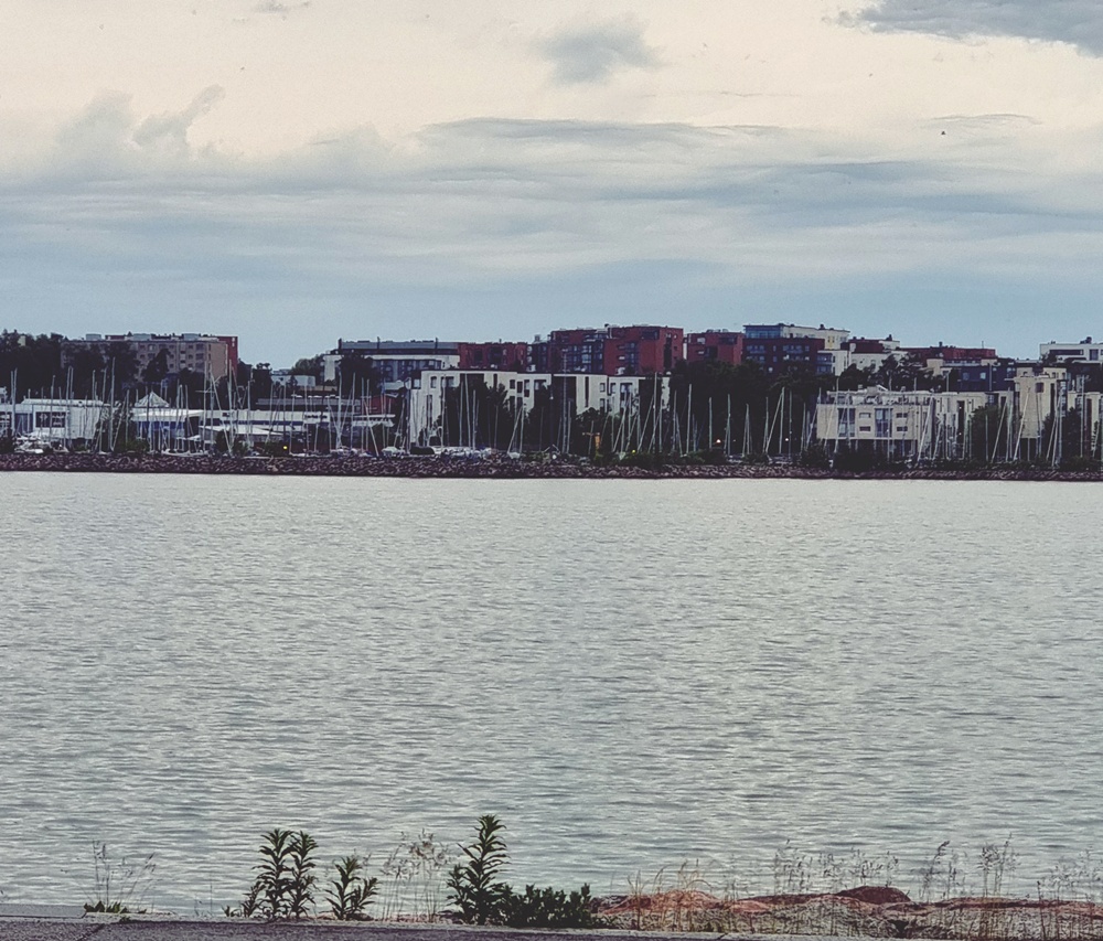 Illan hämärässä Jätkäsaaren ranta on parhaimmillaan. Se on yhtä aikaa urbaani ja luonnonläheinen, vilkas ja silti rauhallinen. Tässä hetkessä on kaikki, mitä kesä voi tarjota: lämpö, tuoksut, äänet ja se sanaton lupaus, että huomenna on taas uusi päivä ja uusi ilta hämärässä. Ja juuri siksi kaipaan näitä kesäiltoja ja kesäkuun herkkiä hetkiä, jolloin meri, taivas ja kaupunki hengittävät samaan tahtiin ja kaikki tuntuu mahdolliselta.