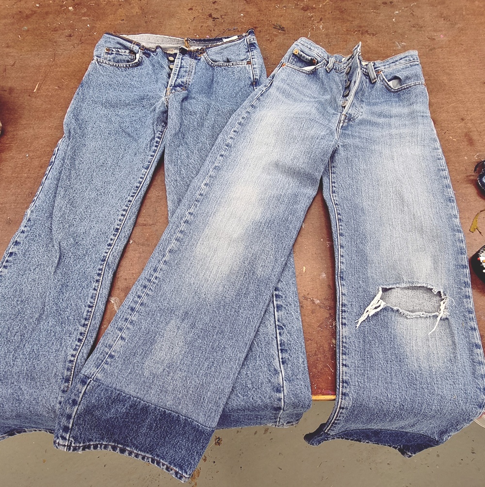 Pölyisten hyllyjen välistä löysin ensin pienen, ahdistavan tiukan farkkuhameen. Sellaisen, joka huutaa vuotta 2004. Vieressä lojui kaksi paria farkkuja, yhtä epätoivoisia, yhtä elämää nähneitä. Repeämiä, kulumaa, jopa polvessa aukko, jonka voisi tulkita muotiviestiksi tai katastrofiksi, näkökulmasta riippuen. Minä näin siinä potentiaalia.