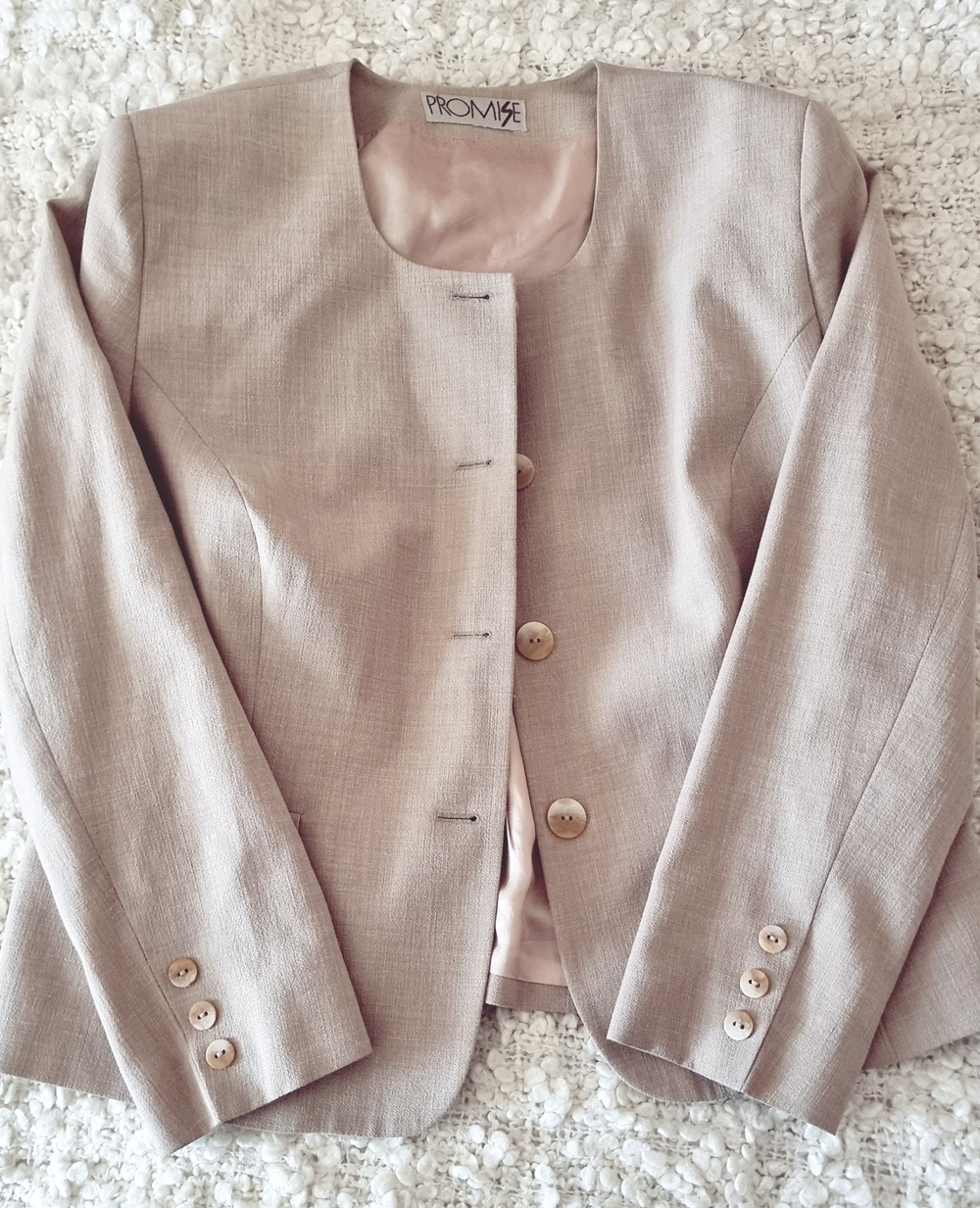 - Viimeinen löytö oli lyhyt, napakka, vaaleanharmaa jakku. Se huokuu 60-lukua, kuin olisi karannut Jean Sebergin vaatekaapista. Täydellinen vaikka sinisten farkkujen tai kukkamekon kanssa. Sellainen, joka tekee ihan tavallisesta tiistaista vähän paremman.