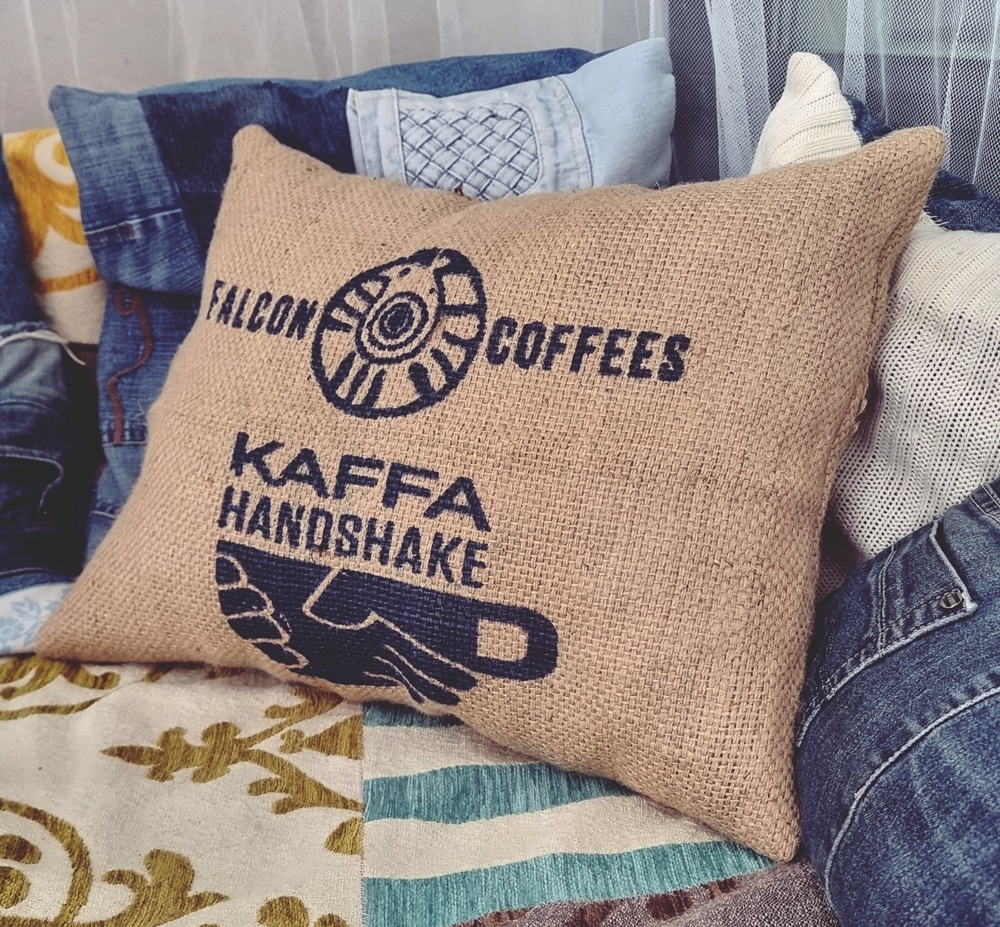 On hetkiä, jolloin suuri visio syntyy käytännössä nollasta. Tai no, yhdestä Kierrätyskeskuksen kahvisäkistä, joka suorastaan huusi päästä uuteen elämään. Säkki oli nähnyt maailmaa: se oli kulkenut intialaisella kahviplantaasilla, hengittänyt varastojen pölyä ja seilannut maita ja mantuja, ennen kuin se päätyi kainalooni ja kotiini. Ja nyt, nyt se on tyyny.