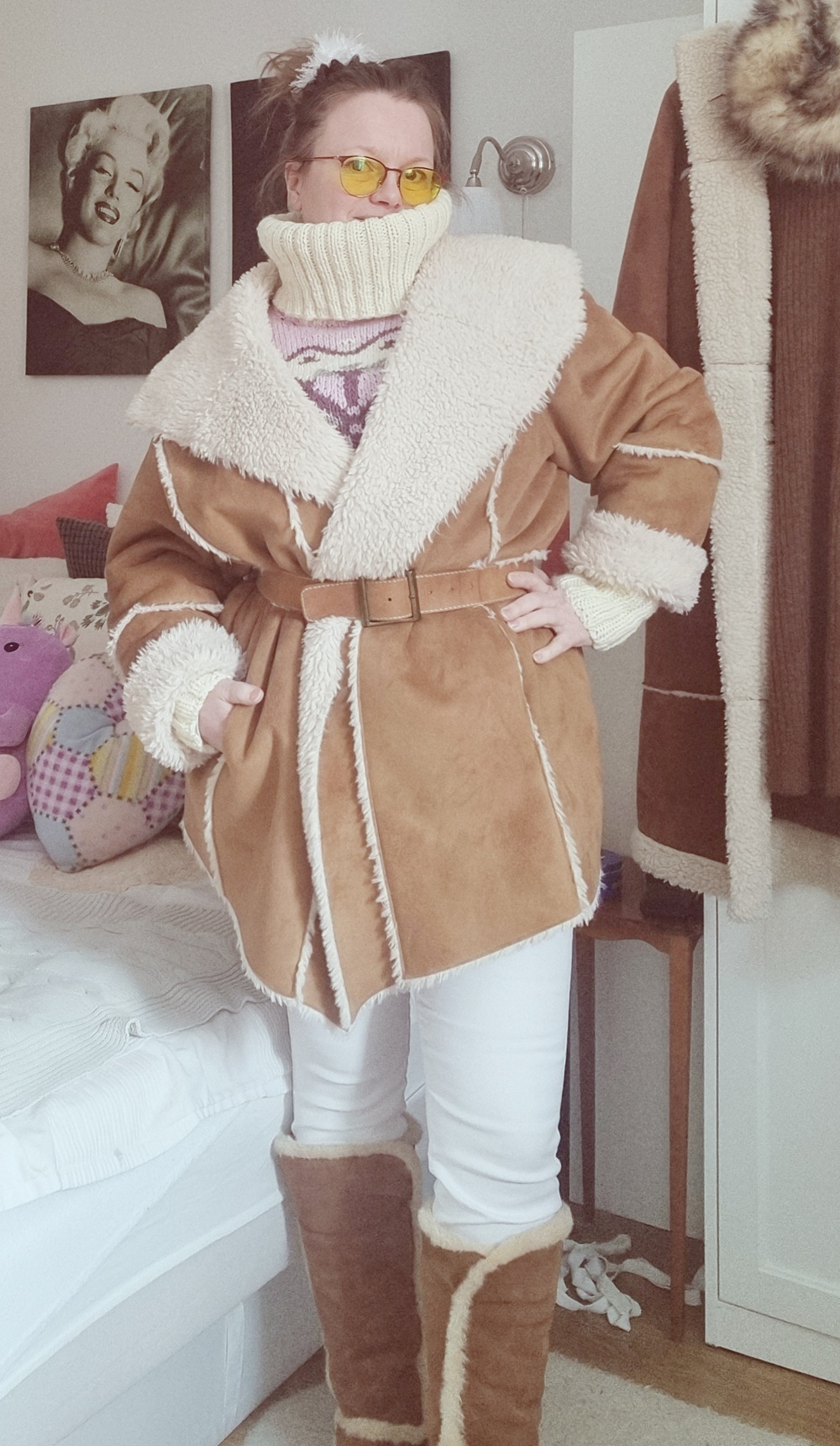 Kun lämpötila laskee kunnolla, tarvitaan takki, joka ei vain näytä hyvältä vaan myös toimii oikeasti. Oversize keinokelsiturkki on tähän täydellinen ratkaisu. Tämä yksilö on löytynyt Kierrätyskeskuksesta ja se näkyy hyvällä tavalla.