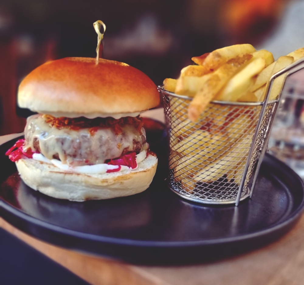 Tilasin burgerin, ja se oli juuri sitä mitä kaipasin, mehevää, pehmeää ja täynnä makua. Ranskalaiset olivat täydellisiä: rapsakoita, lämpimiä ja juuri sopivan suolaisia. Lasi valkoviiniä täydensi hetken ja toi siihen pienen ripauksen juhlavuutta.