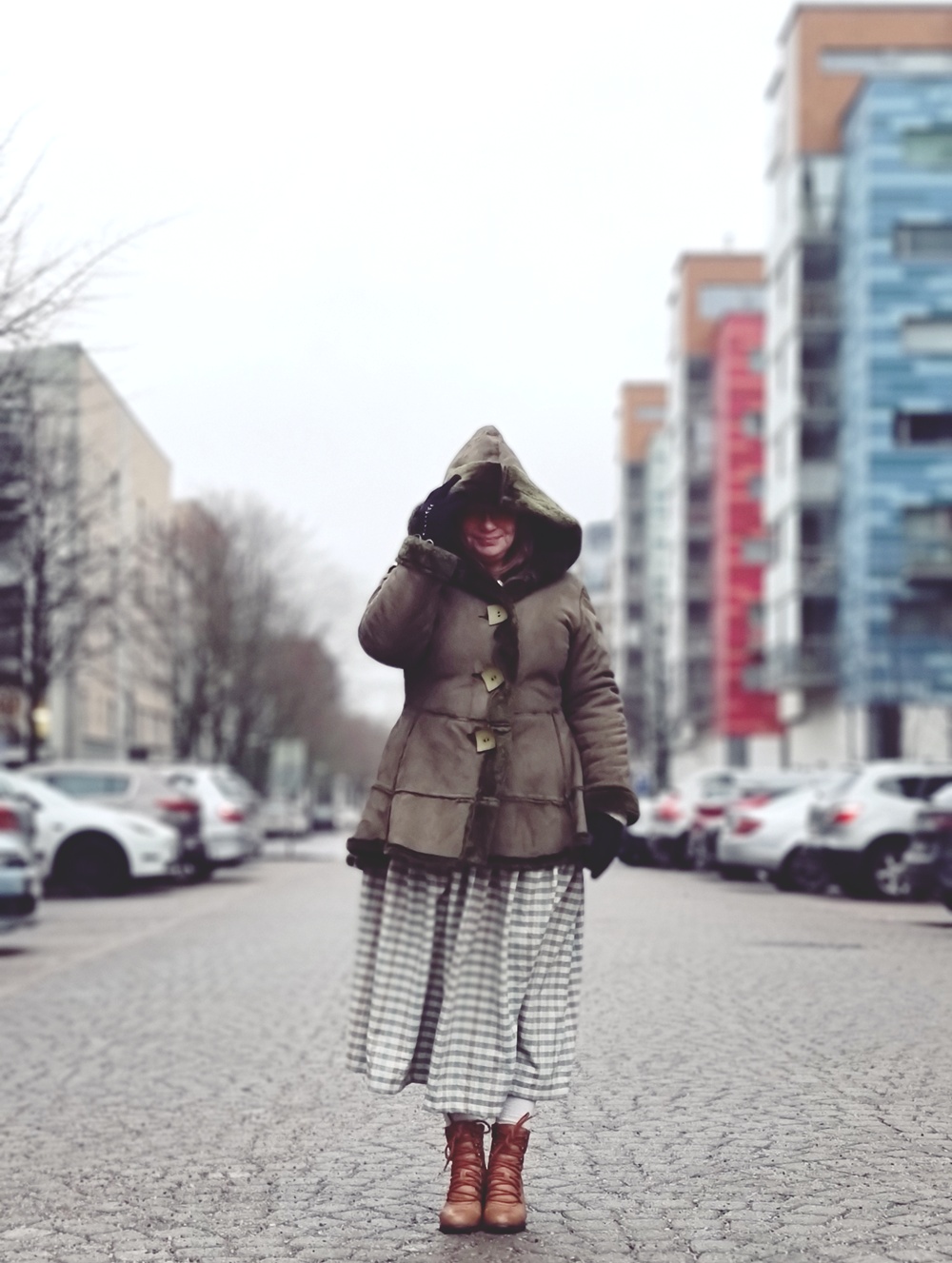 Marraskuun viimeinen päivä avautui pehmeänä, vähän kuin hiljainen lupaus siitä, että juuri tänään olisi hyvä kuunnella itseään. Tästä alkaa talvikävelyn hiljainen sydäntarina. Päälläni oli kokonainen kudelma tarinoita: itse ommeltu hame Kierrätyskeskuksen materiaalitukusta, UFFista löydetty käsintehty neuletakki sekä vuosia sitten ommellusta takista tuunattu talvikaveri. Jalkoihin puin rakkaat nilkkurini, jotka löysin aikanaan Maunulan ostarilla sijainneesta Fidasta. Tässä on kertomus päivästä, joka jäi iholle kuin lämmin valo.