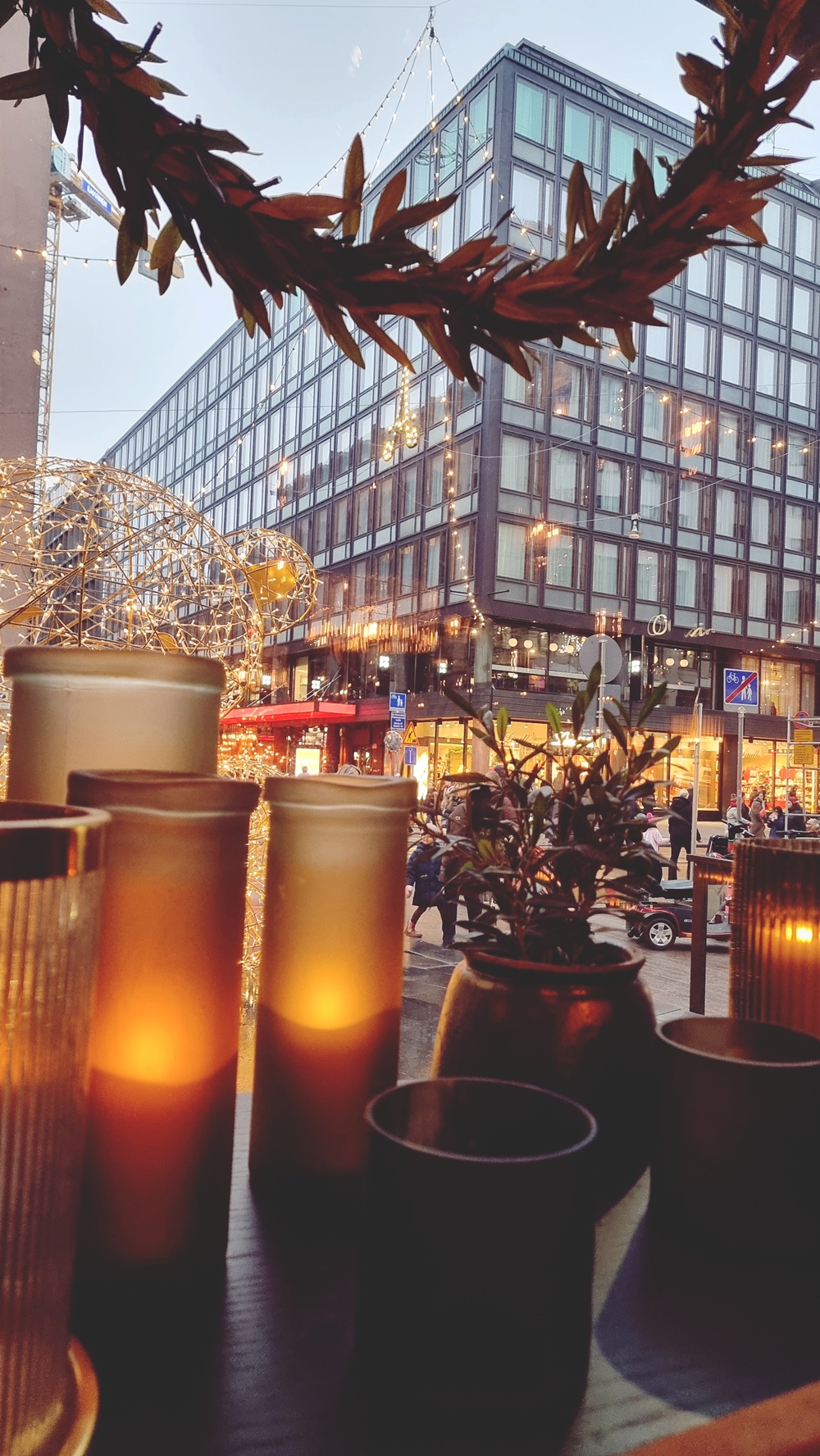 Kluuvin Olivia odotti. Ovi avautui ja sisään tulvahti lämpö, valkosipulin lupaus ja pehmeä puheensorina. Saimme pöydän ikkunan äärestä, ja siinä huoneen suojassa aika tuntui taipuvan hieman. Ruoka maistui tavallista syvemmälle, ehkä siksi, että se syötiin osana päivää, joka oli kuin rauhallinen juhla. Juttelimme kuluneesta vuodesta, sen sävyistä, valon ja varjon vaihdosta. Ja vaikka vuosi oli paikoin ollut raskas, sen lomasta löytyi myös uudenlaista lämpöä. Sellaista, joka syntyy, kun alkaa ymmärtää itseään paremmin.