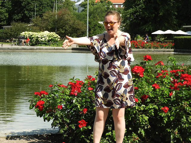 Tämän mekon materiaalit oli liian pieni hame ja farkun jämät, joita jäi vielä tuosta pihan lavasohvan teosta. Välillä tuntuu sille, että nämä farkut eivät lopu koskaan…Leikkasin hameen ylimmän osan pois ja yläosan ompelin saman kaavan mukaan kuin tämän lakanasta tehdyn mekon. Näin sain vielä sopivan mekon käyttöön. Lopputulos on aika hauska.