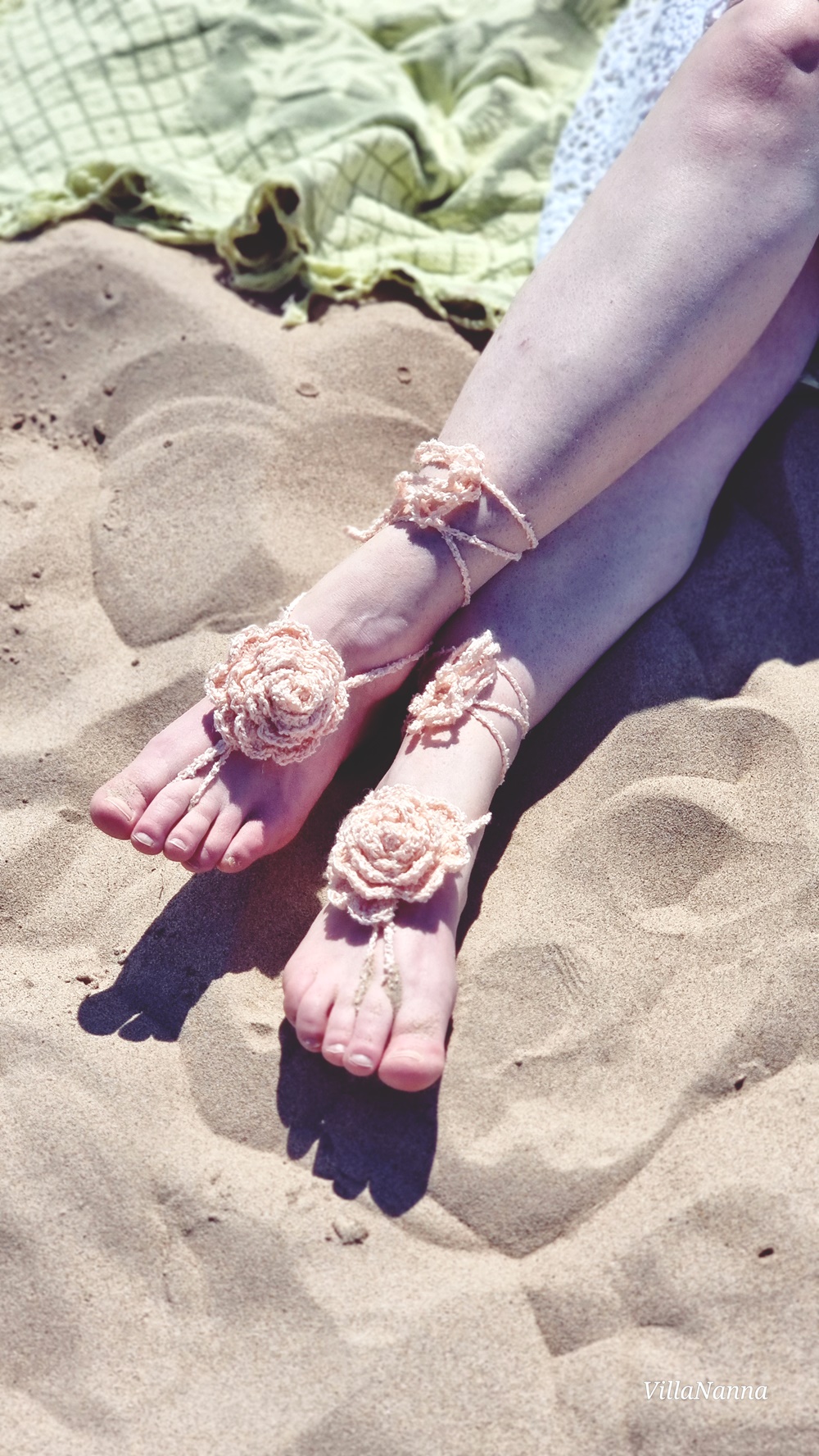 Rantalomalle pitää tietenkin saada virkatut jalkakorut, ne sopivat täydellisesti kesään ja rannalle. Olen aivan rakastunut virkattuihin koruihin, joita tuli tehtyä aika paljonkin nyt kesän aikana.