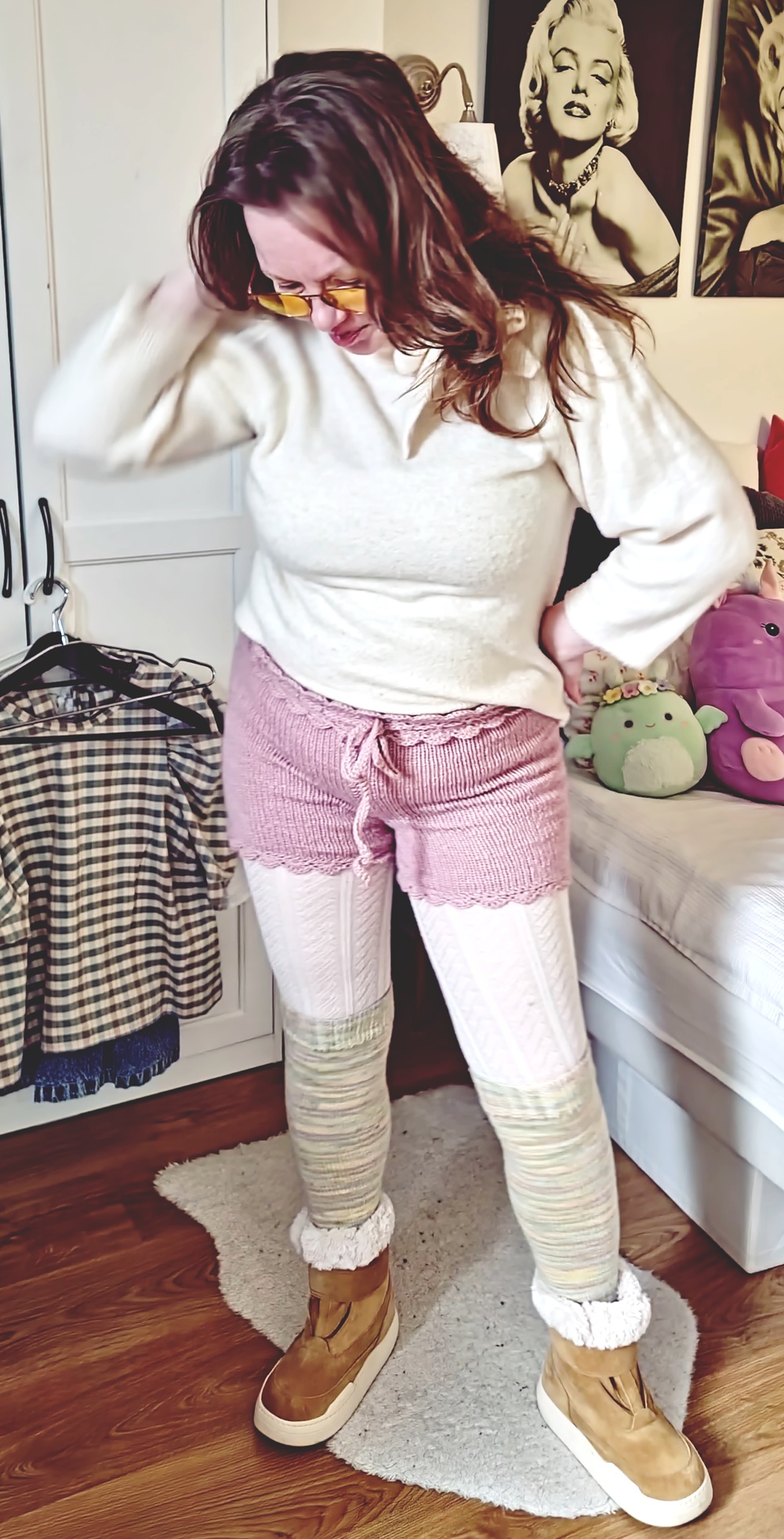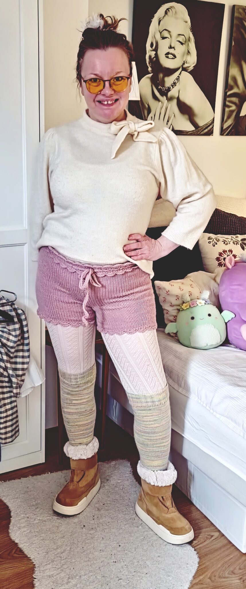 Oli leggarit. Oli virkkausta. Oli ajatus, joka ei lopulta kantanut, eikä löytynyt oikeita lankoja. Sen sijaan löytyi rohkeus purkaa. Ja juuri purkaminen on usein käsityöläisen tärkein taito. Kun irrotin virkatun osan ja katsoin lahkeita uudelleen, näin niissä jotain muuta. En epäonnistumista, vaan mahdollisuuden. Näin syntyi oma versioni villashortseista. Ei kompromissina, vaan tietoisena valintana.